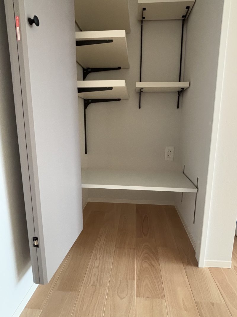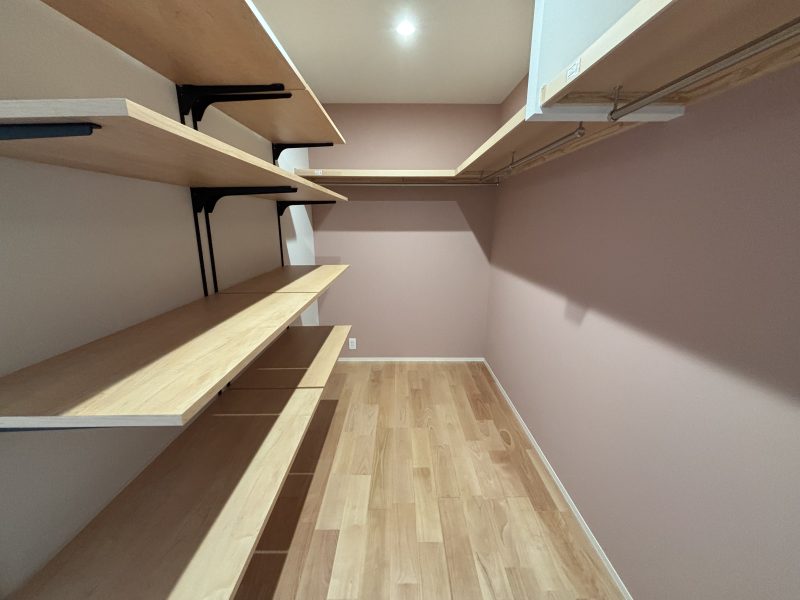 収納は、家全体で7ヶ所確保。家族それぞれの荷物や季節のアイテムをしっかり収納できるので、部屋が散らかりにくく、いつでも快適な空間を保てます。限られたスペースを有効活用しながら、見た目もスッキリとした住まいに仕上げました。