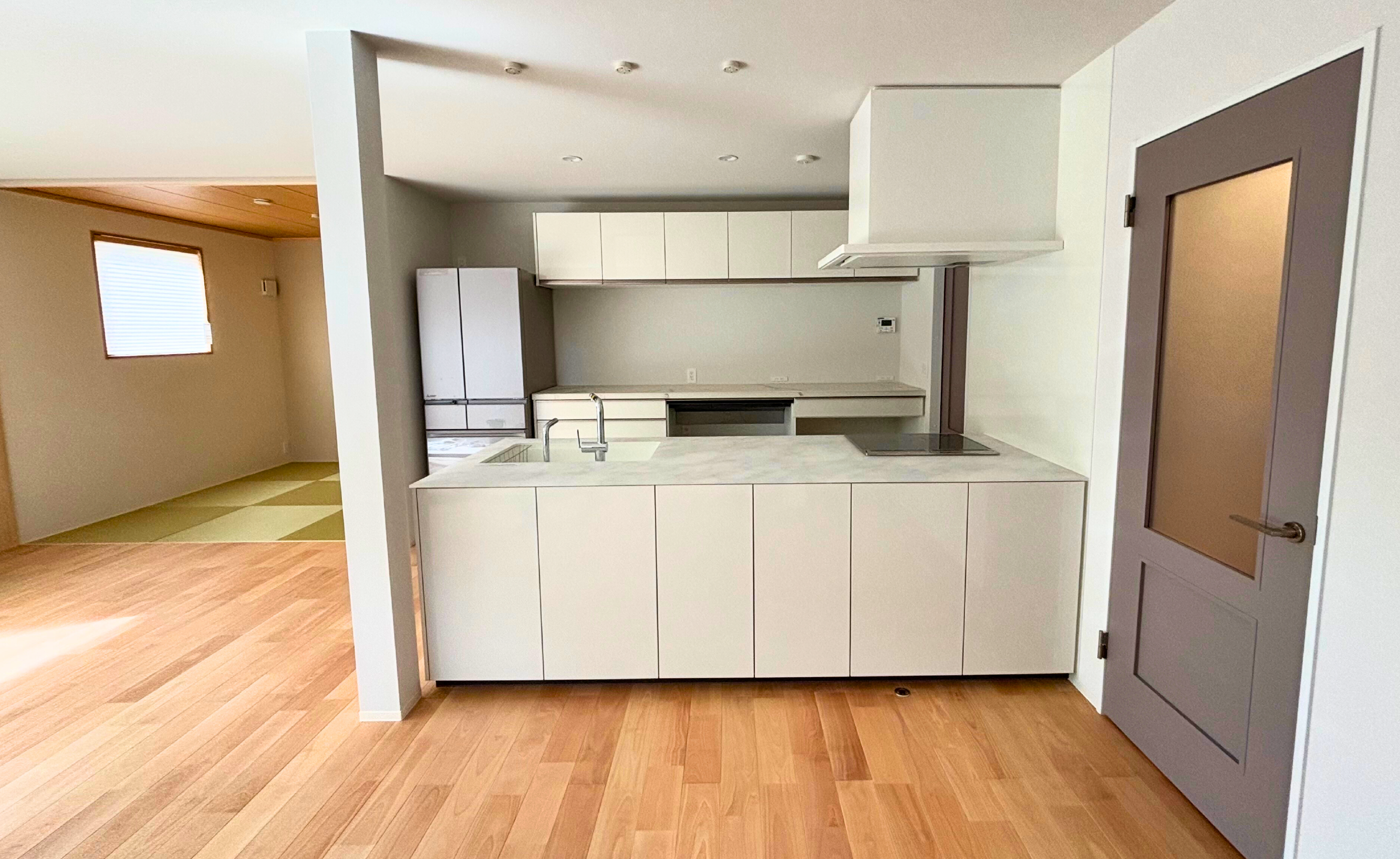 家族ぐるみで交流する友人を招き、泊まっていくことも想定し、開放的で快適な空間を実現しました。広々としたリビングは、みんなで集まりやすく、自然と会話が弾む設計になっています。さらに、ゆっくりとくつろげる和室を隣接させることで、宿泊する方にもリラックスできる空間を提供。家族の時間も、ゲストとの時間も大切にできる間取りにこだわりました。