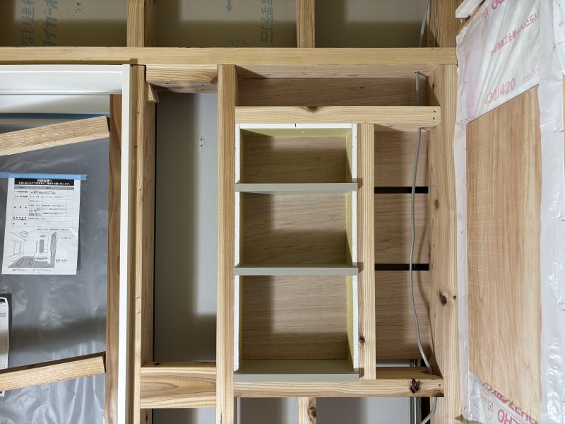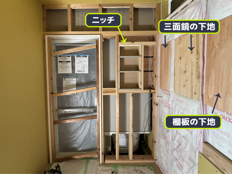 今回のニッチは、105mmの柱と間柱の間のスペースを活用して設置します。
