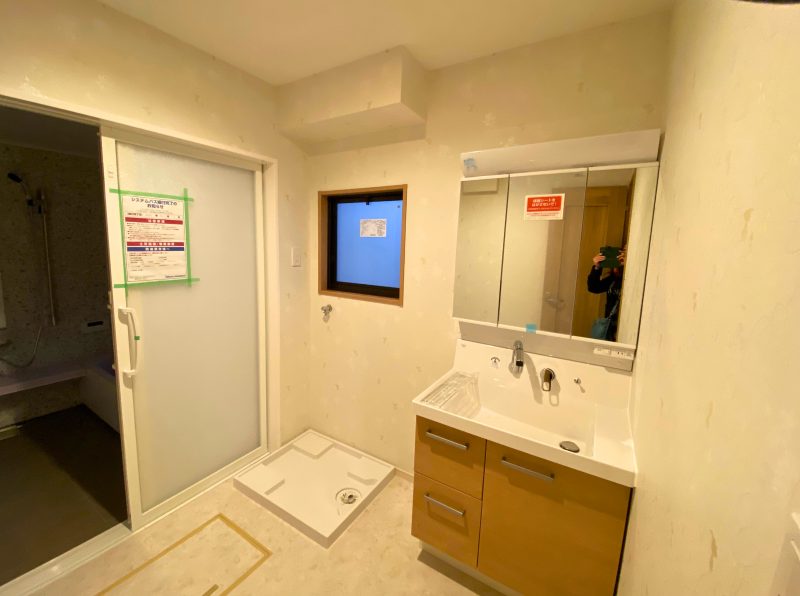 キッチンスペースを広げるため、洗面所とお風呂場の位置を入れ替えました。