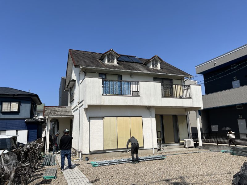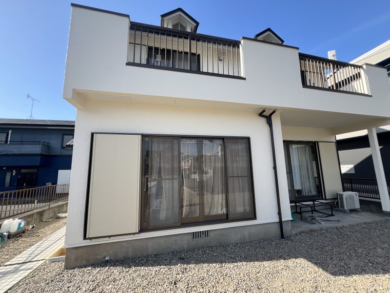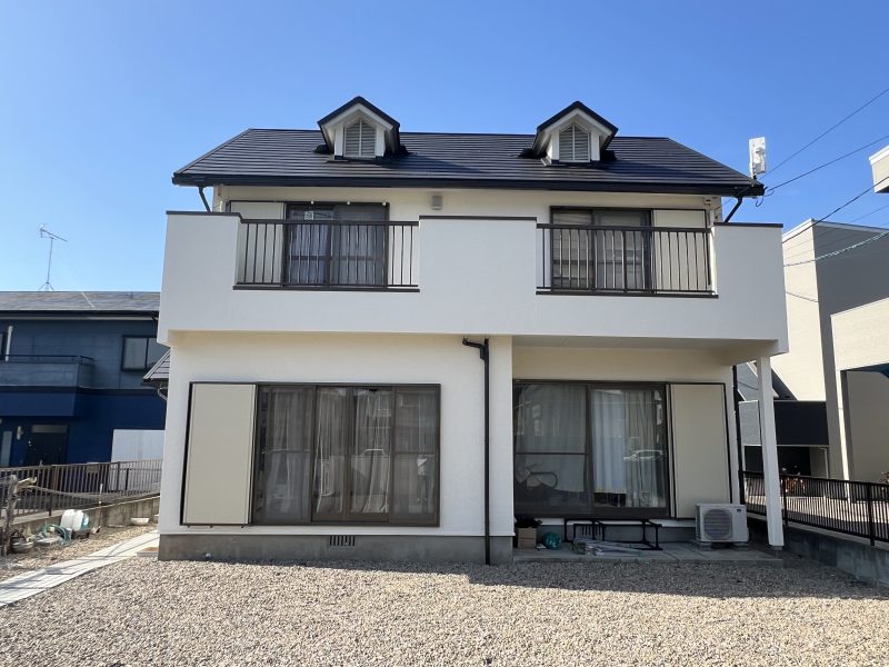 壁と軒天、雨戸の塗装、屋根の修繕、バルコニーの防水工事をを通じて、築40年超の家をリフレッシュしました。外壁塗装は、ひび割れや汚れを修復して、美観を保つだけでなく、防水性や耐久性を高める効果があります。これにより、建物全体を雨風や紫外線から守ります。